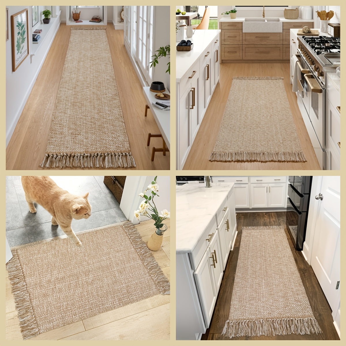 2x3\u002F2x6\u002F3x5\u002F2x8 Long Hallway Runner Mat, Washable Runner Indoor Entryway Mat, Tan\u002FCream Braided Woven Kitchen Runner Rugs Low-Profile Front Door Floor Mat for Laundry Room Bedroom Doorway, Home Decor Mat