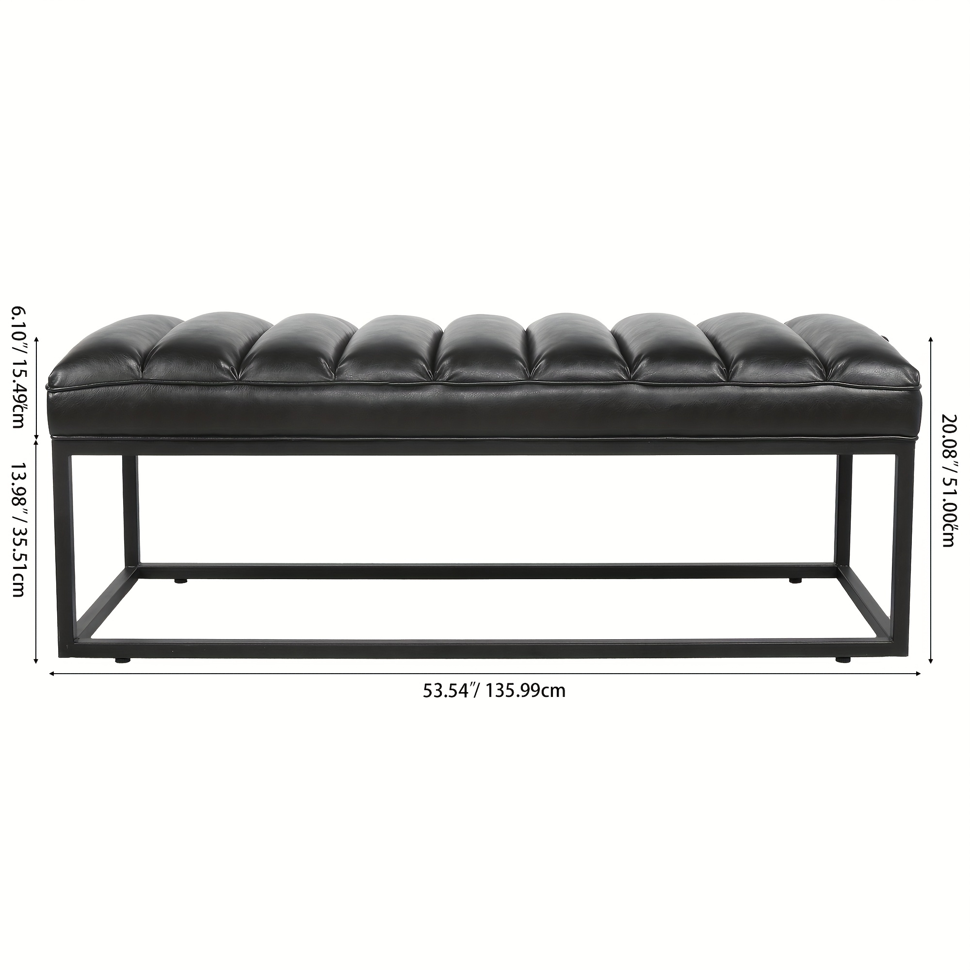 Modern Light Luxury Style Bed End Stool, Shoe Changing Stool. Matte Metal, Solid Wood Frame, Quilted Seating Design, High Resilience Sponge Filling, Available In PU Or Fabric Options, Suitable for Bedroom, Foyer, Living Room And Other Environments.