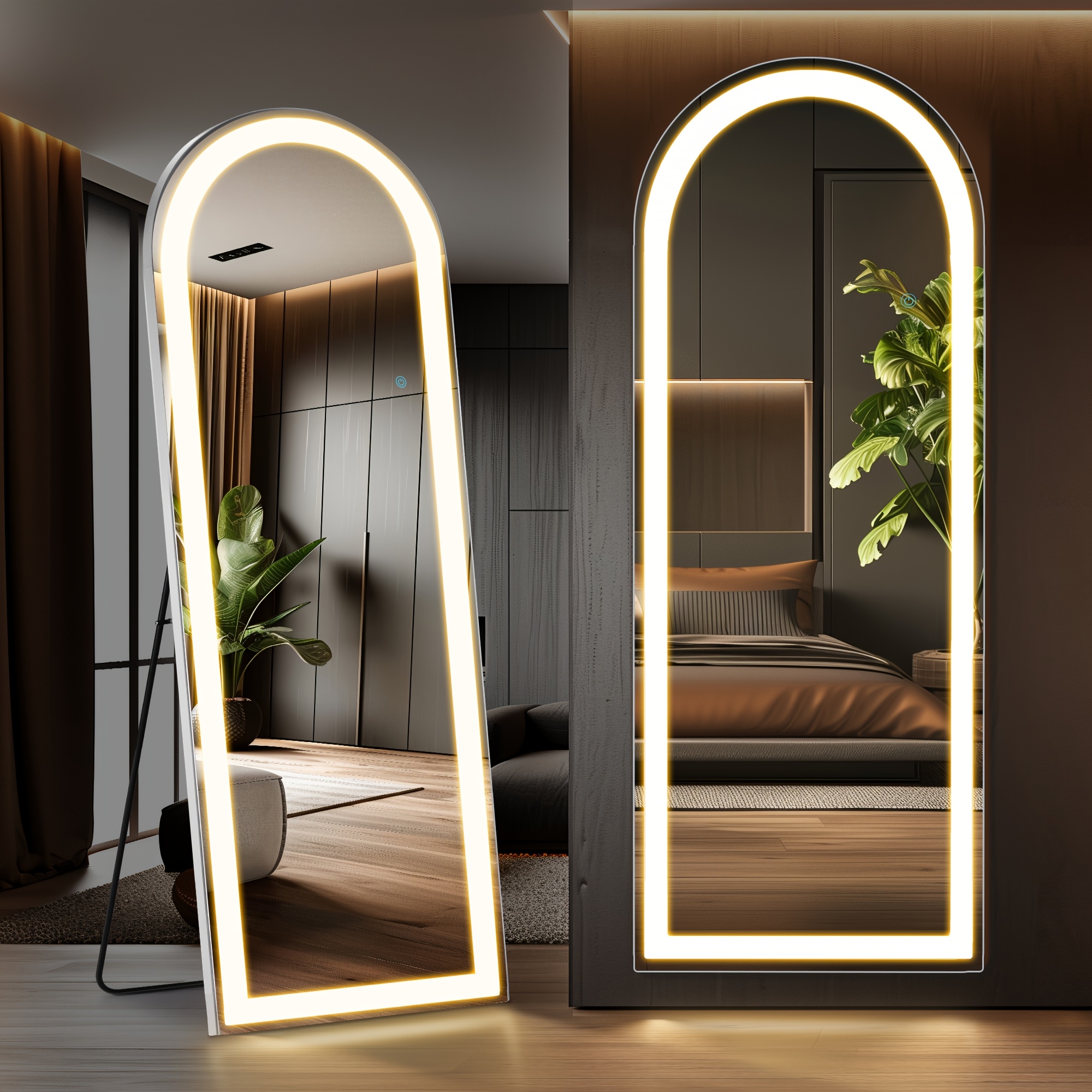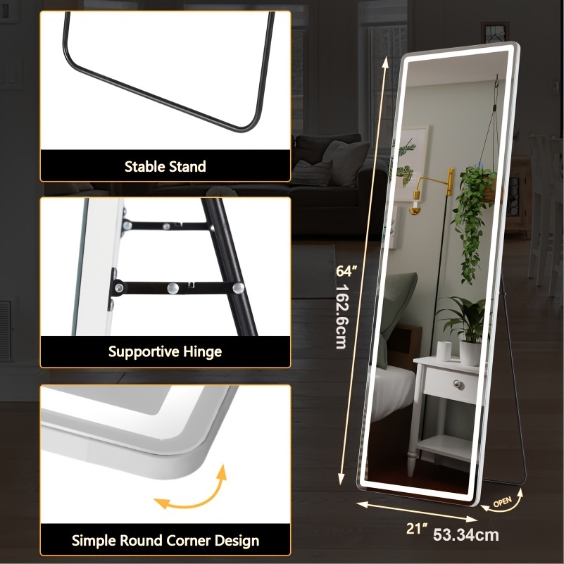 Smart LED Touch Sensor Full-Length Mirror - Adjustable Brightness, Wall-Mount & Freestanding Design with Slim Modern Frame - Ideal for Vanity, Bedroom, Or Dressing Room Lighting